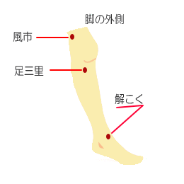 「足三里」(あしさんり)・・・ひざの下、すねの外側にあるつぼ、万能つぼとしても有名です。
