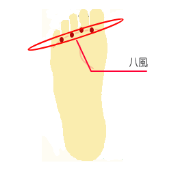 「八風」(はっぷう)・・・足の指のまたにあるつぼ左右4つずつ計8つあるためこの名前だそうです。